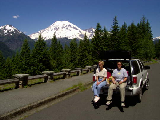 Nicole und Ela machen Pause vorm alten Rainier